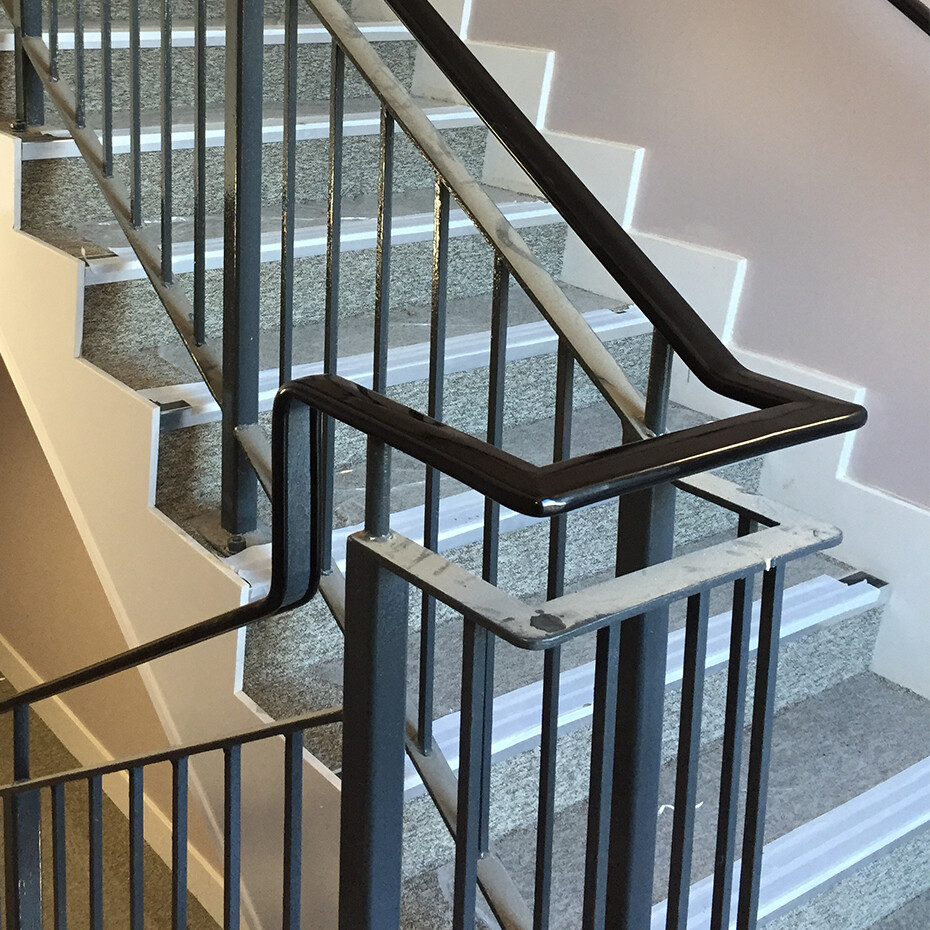 Накладку можно окрасить в массе в любой цвет RAL Classic при оптовом заказе (от 420 метров). Сделан из первичных гранул поливинилхлорида. Поставляется в размере 40*4 мм. Накладка монтируется как на прямые перила, так и на перила изогнутой формы после нагрева монтажным феном. Изделие не требует использования дополнительных торцевых и угловых элементов, край перил можно оформить с помощью загиба погонажа. Подходит для отделки МОП и капитального ремонта, стоек к многократной влажной уборке с помощью любых дезинфицирующих средств. Поставляется бухтами по 21 м.